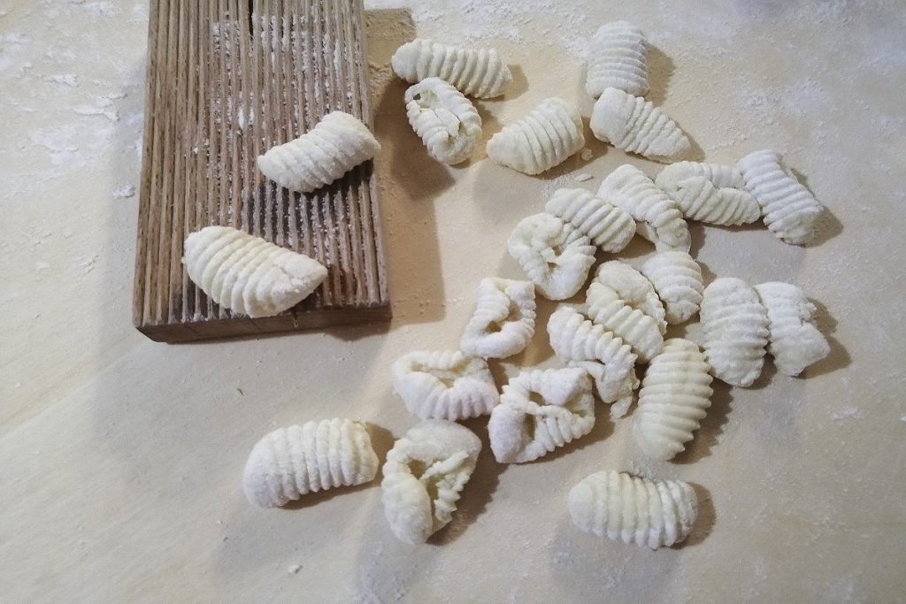 Passamos os pedaços no rigagnocchi.