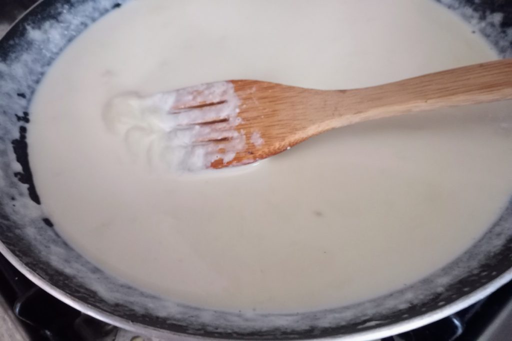 Estamos quase lá… Enquanto leva a água da massa para ferver, derreta em fogo baixo a fontina previamente deixada de molho no creme de leite fresco.