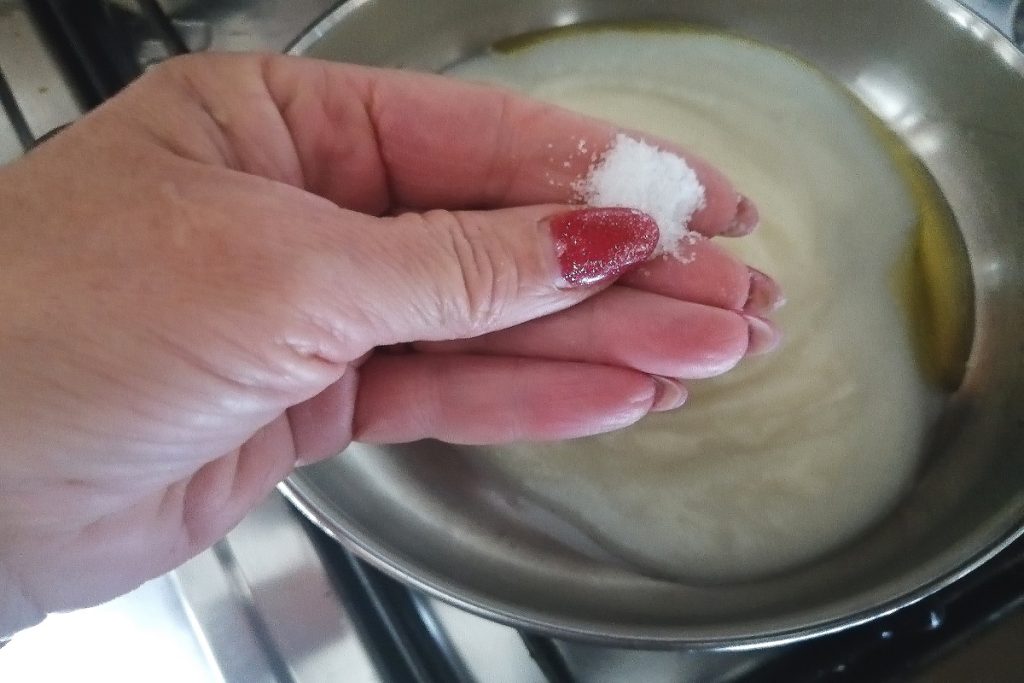 Tempere com sal, alho em pó e uma boa pitada de cúrcuma, misture.