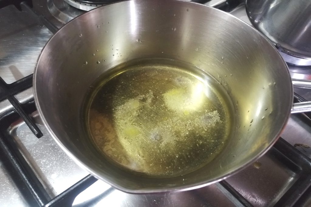 • Em uma panela, colocamos a água que precisamos, adicionamos o sal e o óleo e levamos ao fogo para aquecer levemente.