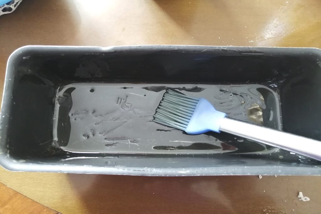 Pincelamos a forma de plumcake com um pouco de azeite.