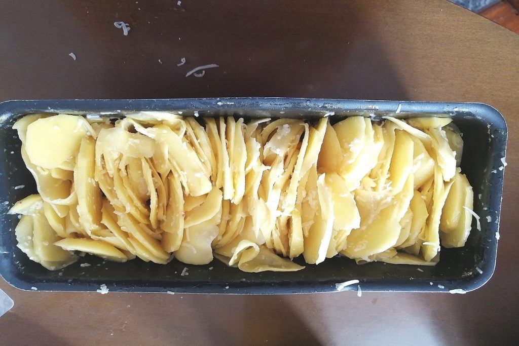 O plumcake de batatas em lâminas , simples, impactante, saboroso e delicioso com aquele queijo que derrete!