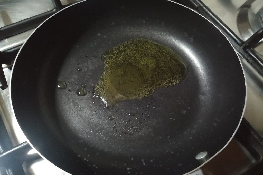 • Coloque uma panela no fogo com as duas colheres de azeite EVO.