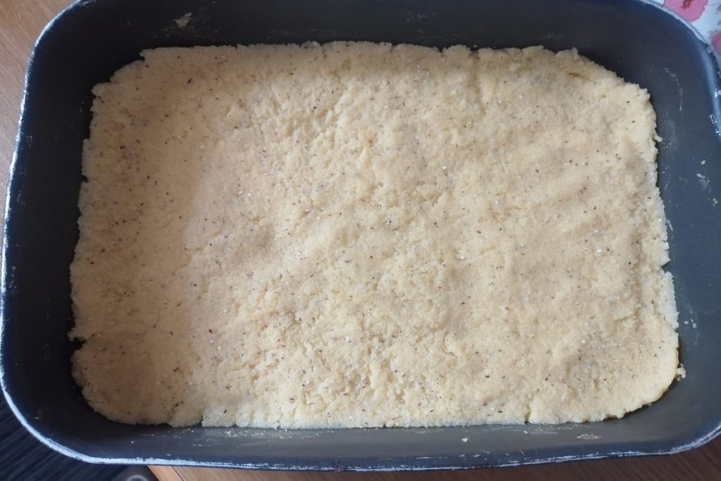 • Despeje a polenta em uma assadeira retangular e espalhe uniformemente.