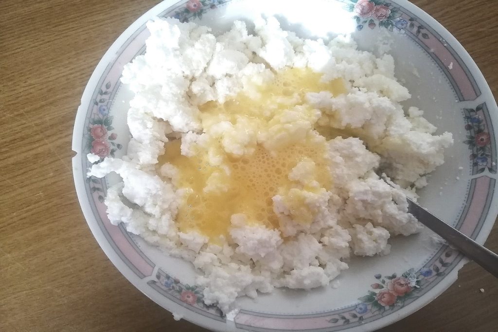 Em uma tigela, incorporamos a ricota e amassamos com um garfo, adicionamos o queijo parmesão.