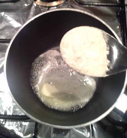 Quando a manteiga estiver completamente derretida, adicione a farinha.