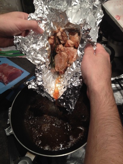 • Quando virar o filé de porco para temperá-lo e perfumá-lo, coloque a sálvia e o alecrim.