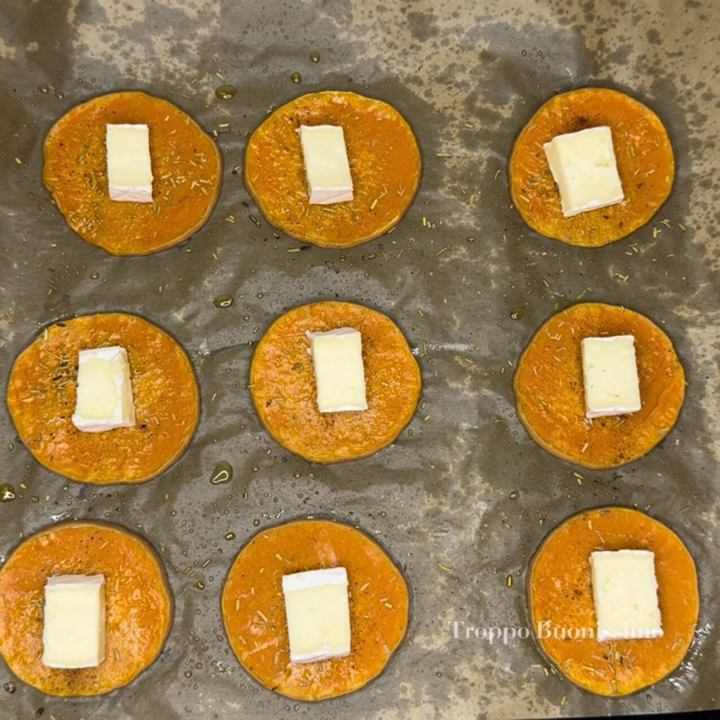 Adicione o brie em pedaços sobre cada medalhão e volte ao forno por 5-7 minutos, até que o queijo derreta.
