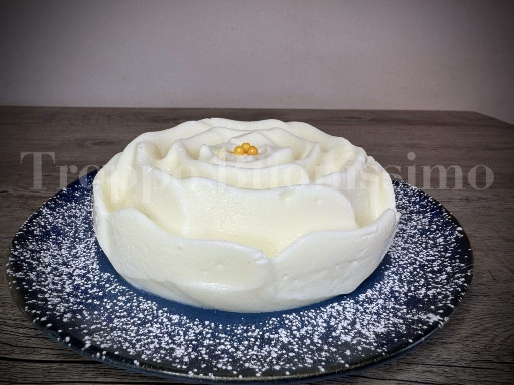 Despeje o biancomangiare em copos individuais ou em um único molde, dependendo de como você prefere servi-lo.Eu usei um lindo molde de silicone em forma de rosa.