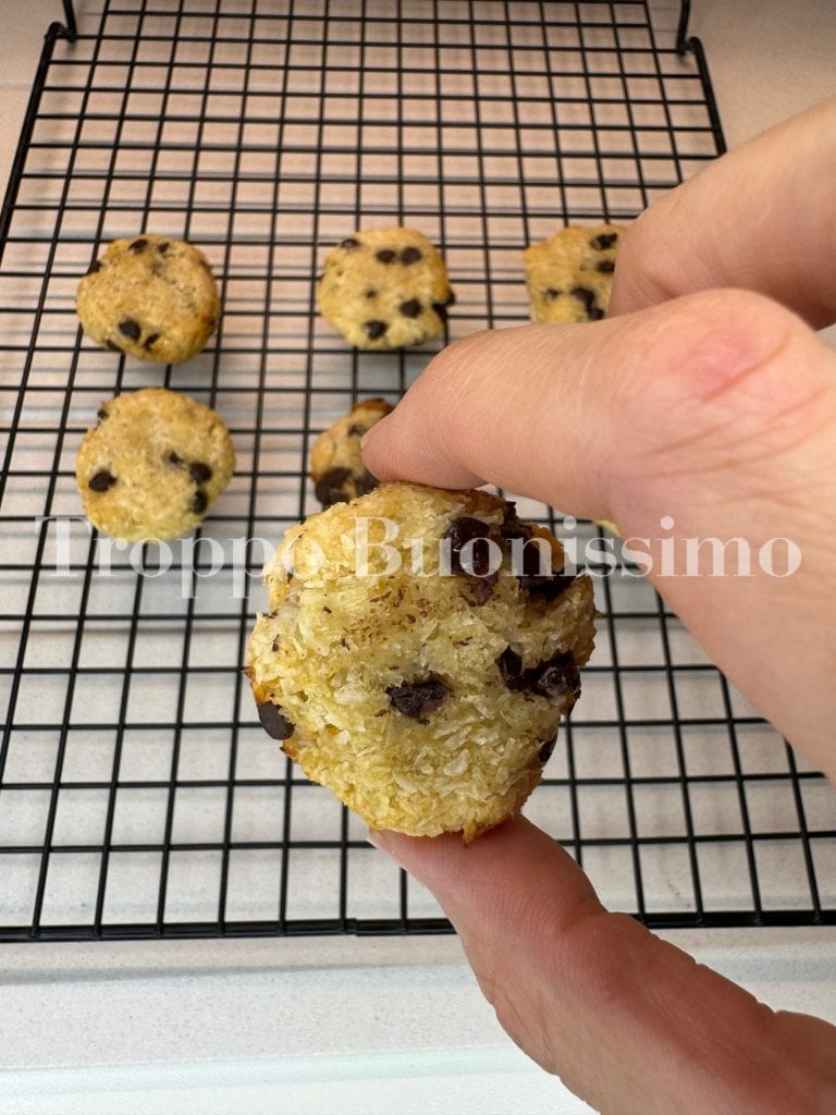 Coloque os biscoitos bem espaçados na cesta da fritadeira a ar previamente forrada com papel manteiga apropriado. Cozinhe os biscoitos a 160° por oito minutos, depois abra a cesta, vire os biscoitos e continue a cocção por outros oito minutos. Depois de assados, deixe esfriar os biscoitos em uma grade antes de servir.