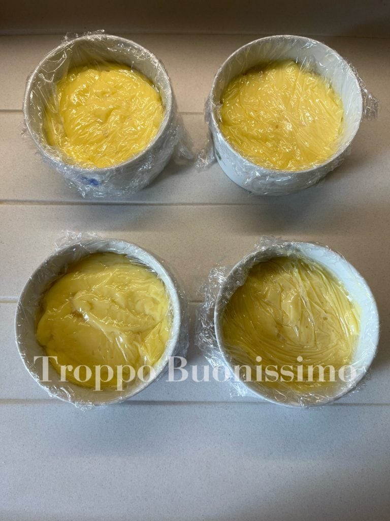Despeje o creme nos recipientes e cubra-os com filme plástico em contato.