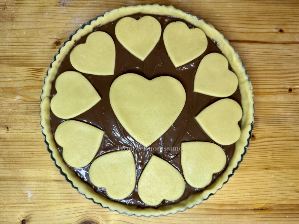 Uma torta crocante, simples e super romântica, a sobremesa perfeita para o Dia dos Namorados: a clássica massa frola feita em casa que abriga um creme de avelãs cremoso e muitos corações decorativos. Um doce que cheira aamor, ideal também se você quiser surpreender de última hora. Prepare-o com seu coração… e o sucesso é garantido! ❤️
