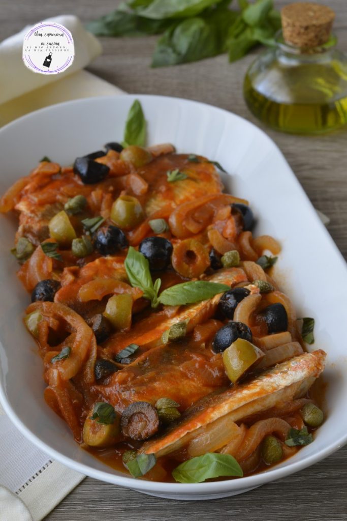 Os filés de cabracho à moda mediterrânea são um segundo prato de peixe simples e muito saboroso. Deliciosos filés de cabracho, também chamado de cabracho vermelho ou peixe capão, é um tipo de peixe com carne branca e firme, perfeito para cozinhar em molho, como nesta receita. Um molho à base de cebolas, azeitonas verdes e pretas, alcaparras e molho de tomate, ou seja, à moda mediterrânea, acompanham este tipo de peixe.
