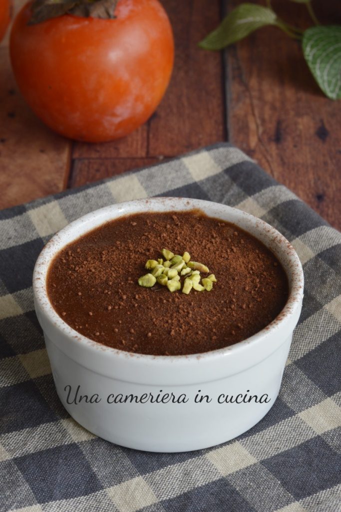 O pudim de caqui e cacau é uma sobremesa clássica do período de outono e inverno. É preparado num piscar de olhos e é ideal para saborear ao final da refeição como sobremesa ou mesmo como um lanche delicioso, saudável e com poucas gorduras. Se desejar, você pode adicionar canela em pó para aromatizar o pudim e decorar com frutas secas, gotas de chocolate ou biscoitos triturados.