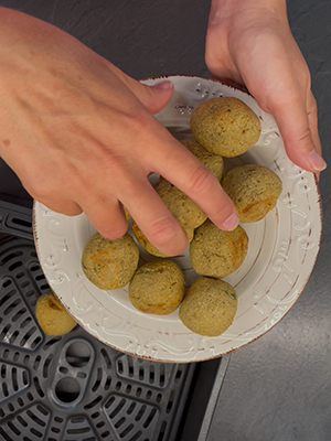 Outra vantagem da fritadeira sem óleo é que não aquece o ambiente como o forno, o que não é pouca coisa nesta época do ano. Obviamente, se preferir, você pode cozinhar as almôndegas de berinjela no forno; no final da receita, você encontrará as instruções para ambos os métodos de cocção.