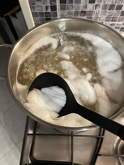 Assim que começar a ferver, remova a espuma que se formar com uma concha e abaixe o fogo. Deixe o grão-de-bico cozinhar com a tampa e em fogo bem baixo por 1 hora, depois prove para verificar o cozimento. Se estiverem cozidos, desligue o fogo e deixe na água por mais 15 minutos.