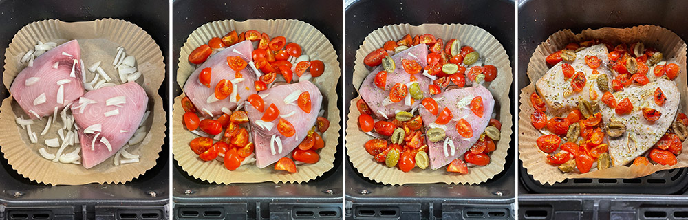 Como preparar o Espadarte com tomatinhos na fritadeira sem óleo