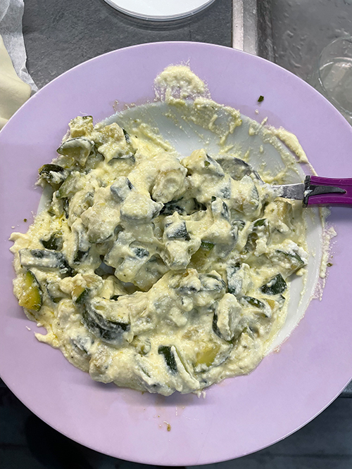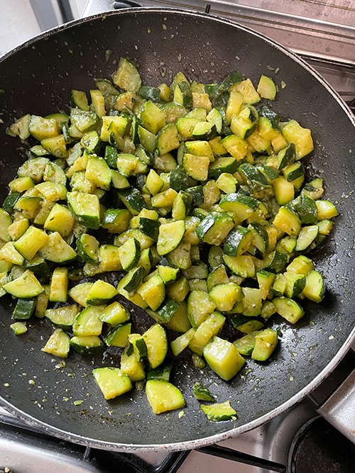 • Adicione as abobrinhas já mornas e misture bem.