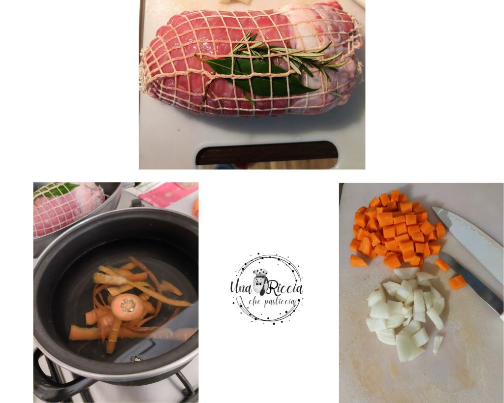 Deixamos dourar a vitela de todos os lados para que se caramelize e crie uma crostinha que mantenha todos os sucos dentro da carne e a mantenha macia. Quando estiver dourada de todos os lados, deglaceamos com o vinho branco, deixamos evaporar o álcool e depois adicionamos as cenouras e cebolas, deixamos fritar um minutinho e adicionamos duas conchas de caldo.