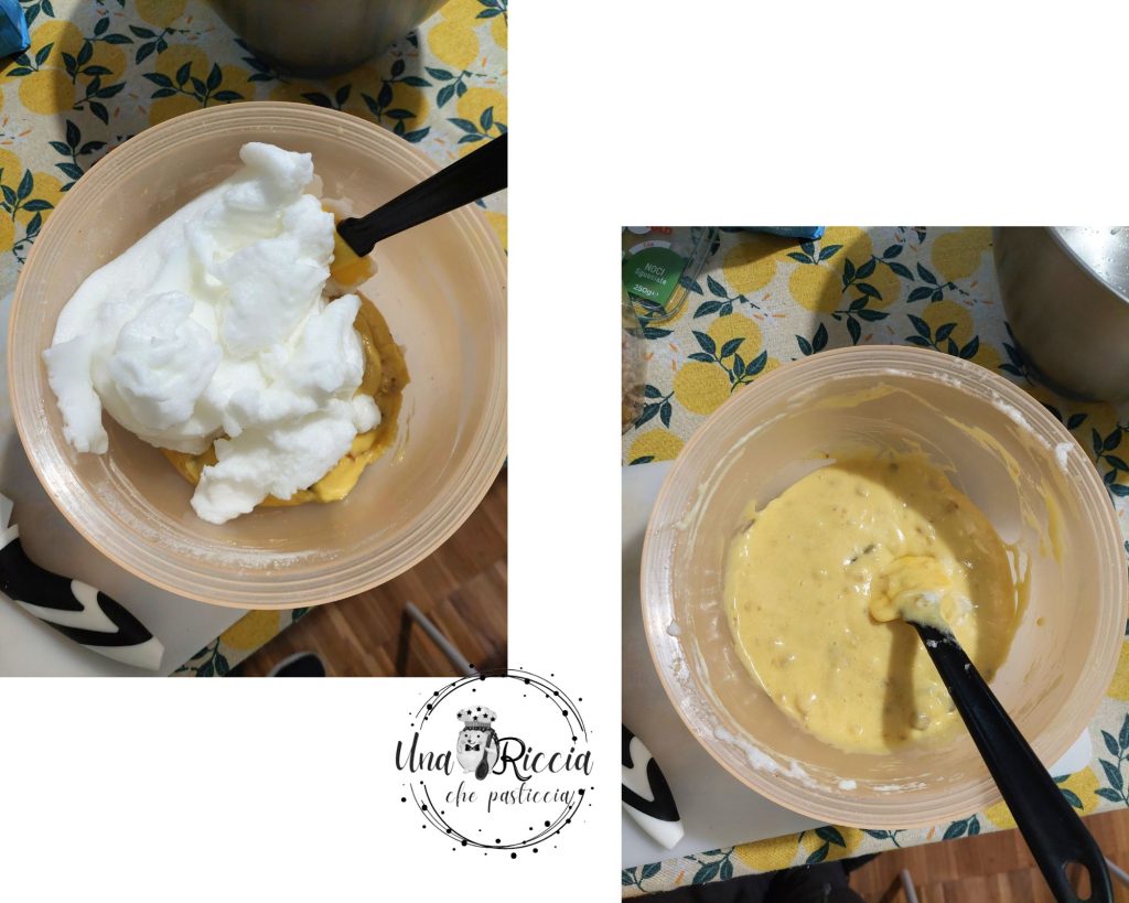 Pegue as claras em neve e adicione-as à massa até agora obtida usando uma espátula e fazendo movimentos delicados de baixo para cima para não deixá-las desmontar.