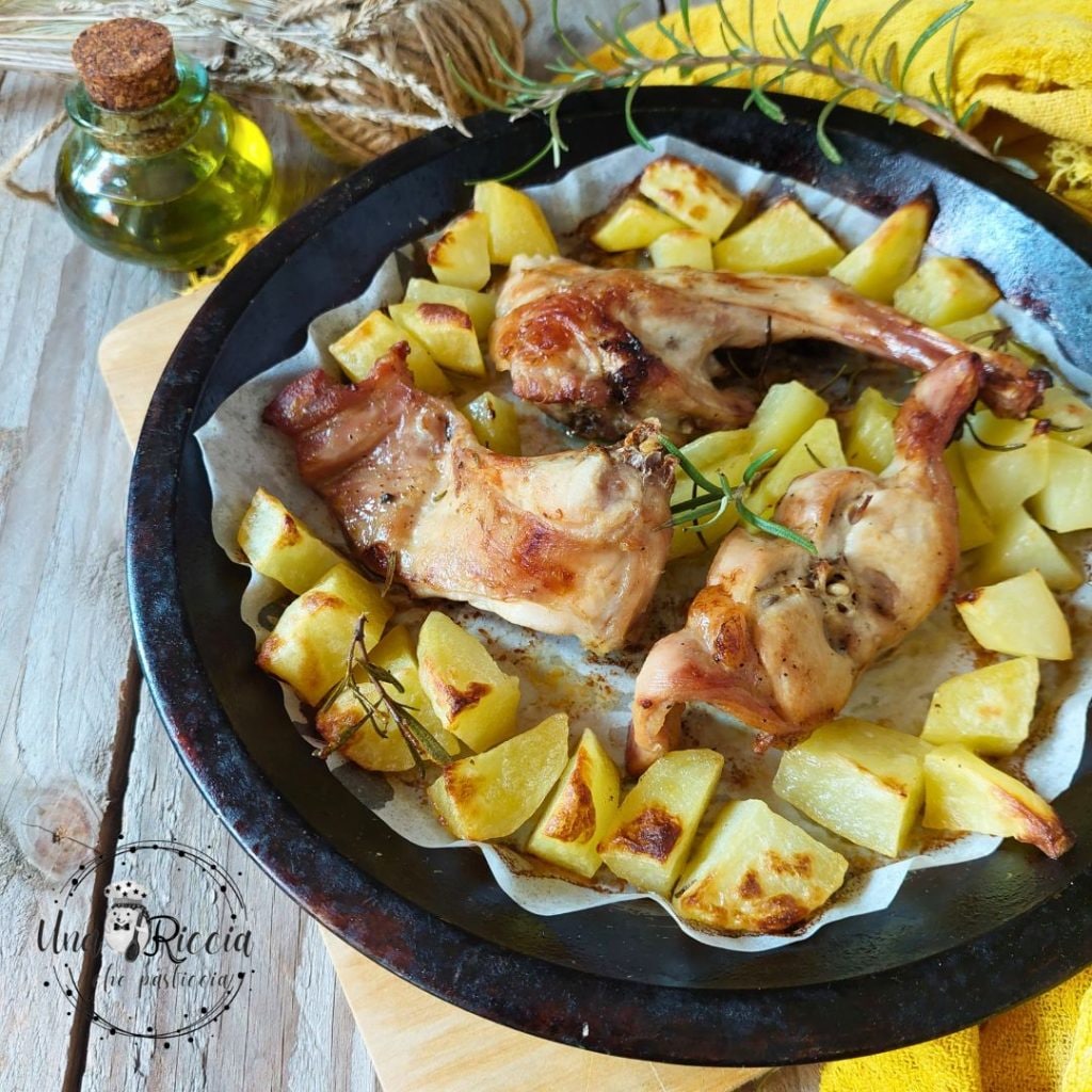 Hoje receita para um segundo prato de carne: coelho assado com batatas.