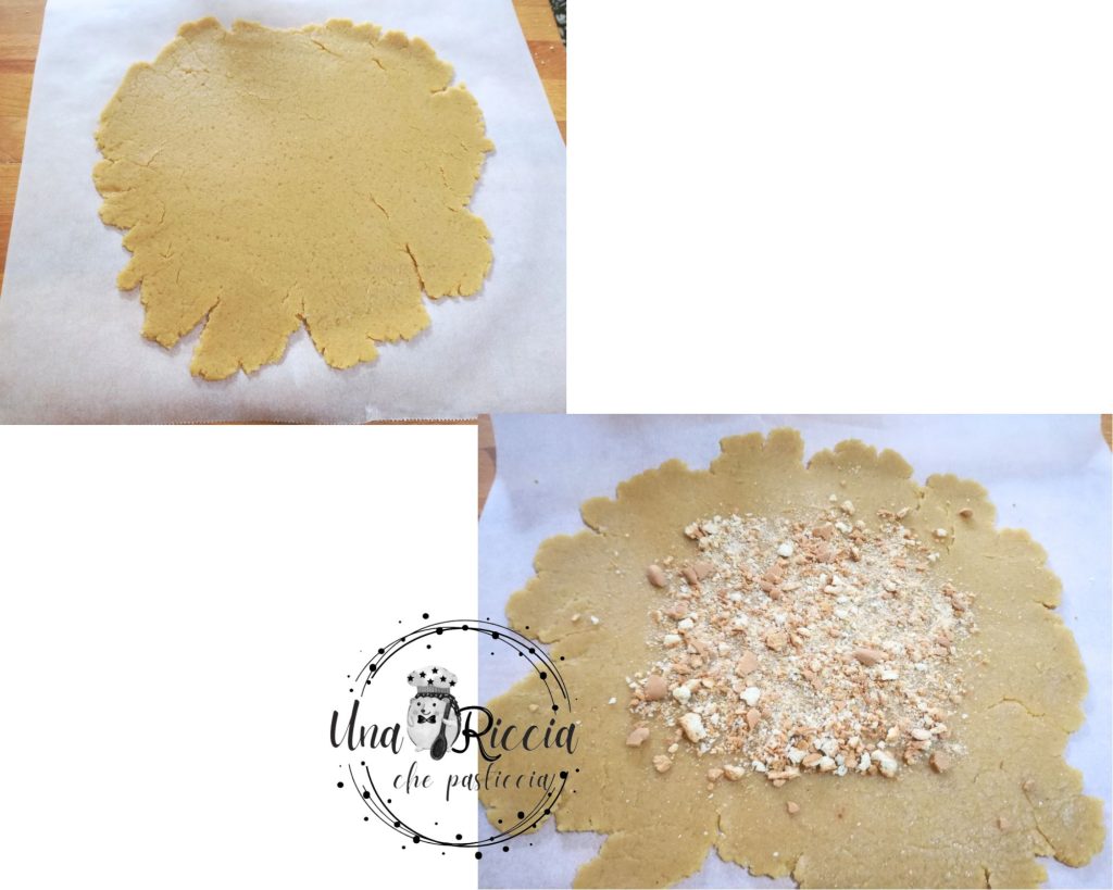 No local de trabalho, colocamos as farinhas formando um monte com um buraco no meio e no centro colocamos a manteiga fria cortada em pedaços e começamos a trabalhar juntos primeiro amassando e depois esfregando os ingredientes entre as mãos até obtermos uma mistura com a consistência de areia.Reformamos uma montanha de farinha e colocamos dentro o ovo, a gema, o óleo de sementes, o açúcar mascavo e uma pitada de sal, então trabalhamos a massa, mas rapidamente para não esquentar muito a manteiga. Obtemos uma bola lisa e homogênea.