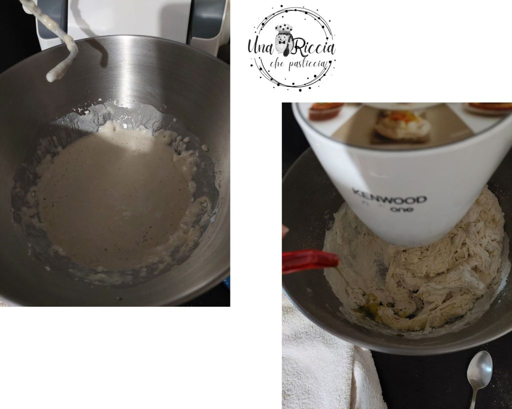 Deixamos a máquina trabalhar até que a massa esteja bem ligada ao gancho, em seguida, retiramos da tigela da planetária e colocamos em uma tigela ligeiramente untada. Cobrimos com filme plástico e deixamos fermentar por 3 horas fora da geladeira.