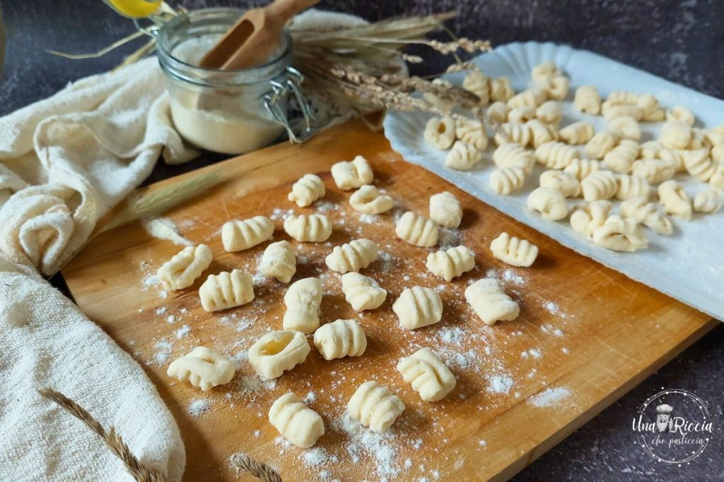 Pegue um pedacinho de massa e comece a alongá-lo para formar um rolinho, então role-o sob a palma das mãos para frente e para trás sobre a superfície de trabalho. Uma vez obtido um rolinho da espessura de um dedo, corte-o com uma espátula formando nhoques de cerca de meio centímetro. Polvilhe levemente com farinha e misture-os com muita delicadeza, apenas para aderir a farinha de todos os lados e não deixar os nhoques grudarem entre si.