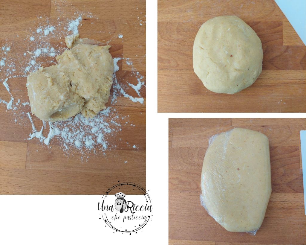No mixer colocamos a farinha e a manteiga fria em pedaços e ligamos para obter uma mistura granulosa, depois colocamos o ovo, uma pitada de sal e a farinha de avelãs, ligamos novamente o mixer e deixamos até que a massa esteja compacta.