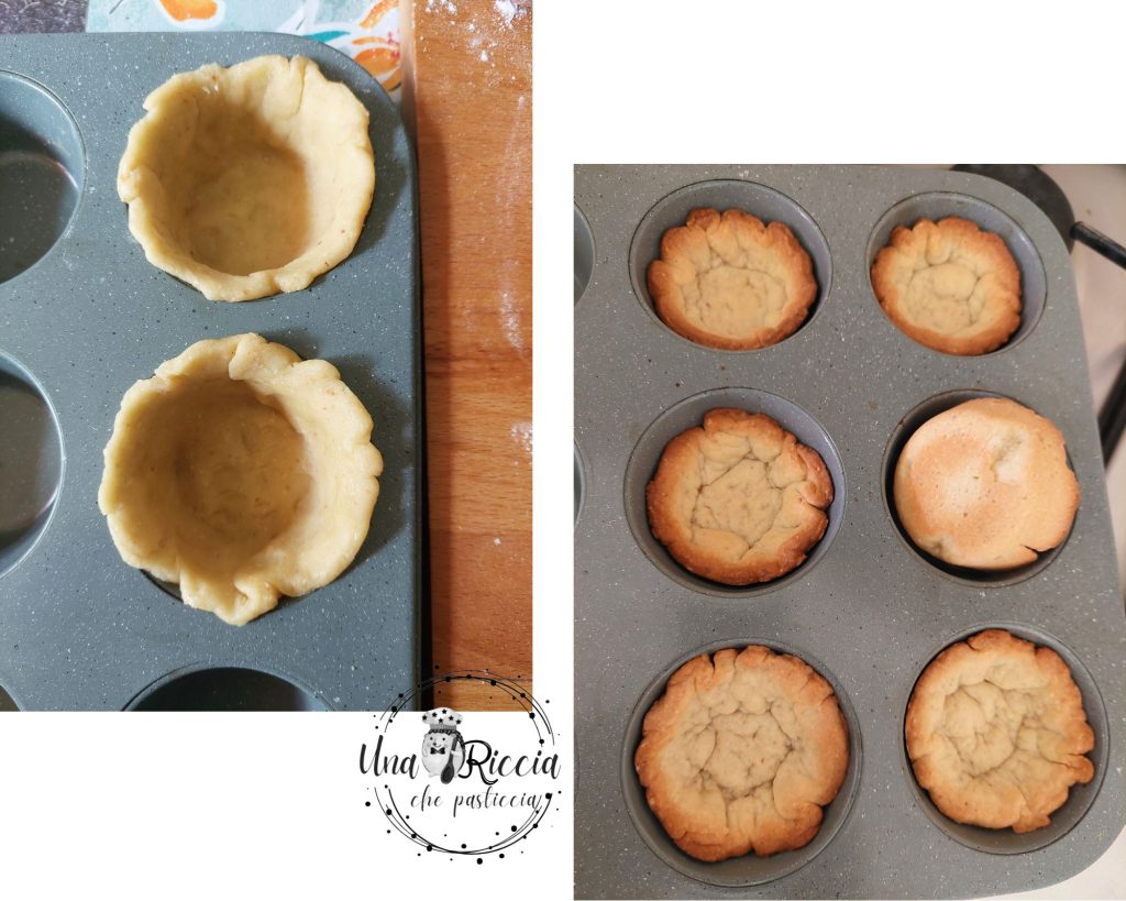 Pegamos os discos obtidos e forramos as formas de muffin, deixando a borda irregular para criar o efeito ‘amassado’ do ninho. Furamos levemente a base, colocamos a forma de muffin na geladeira e ligamos o forno a 175 graus, quando atingir a temperatura, assamos por 20 minutos e até dourar também embaixo. Retiramos do forno e deixamos esfriar.