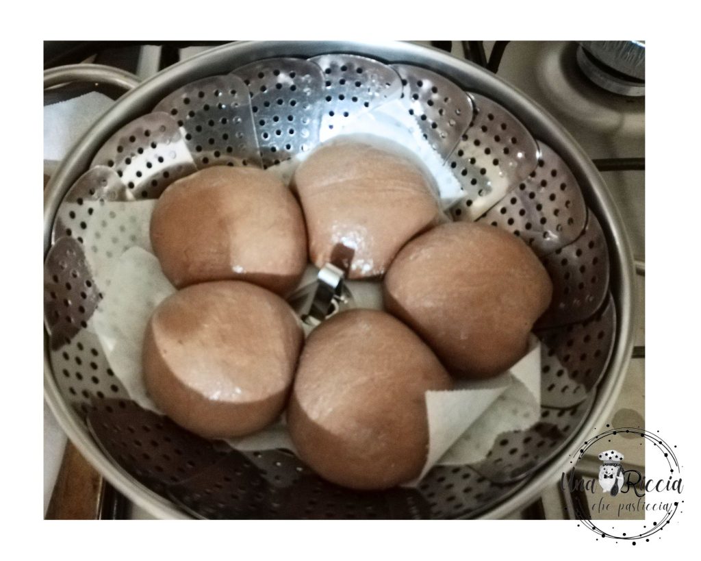 Passado o tempo, os pães de cacau no vapor estão cozidos e prontos para serem saboreados tanto quentes quanto frios. Tire uma foto dos seus pães de cacau no vapor e poste nas redes sociais, marcando-me (uma riccia che pasticcia instagram e facebook) e me conte como você os comeu.
