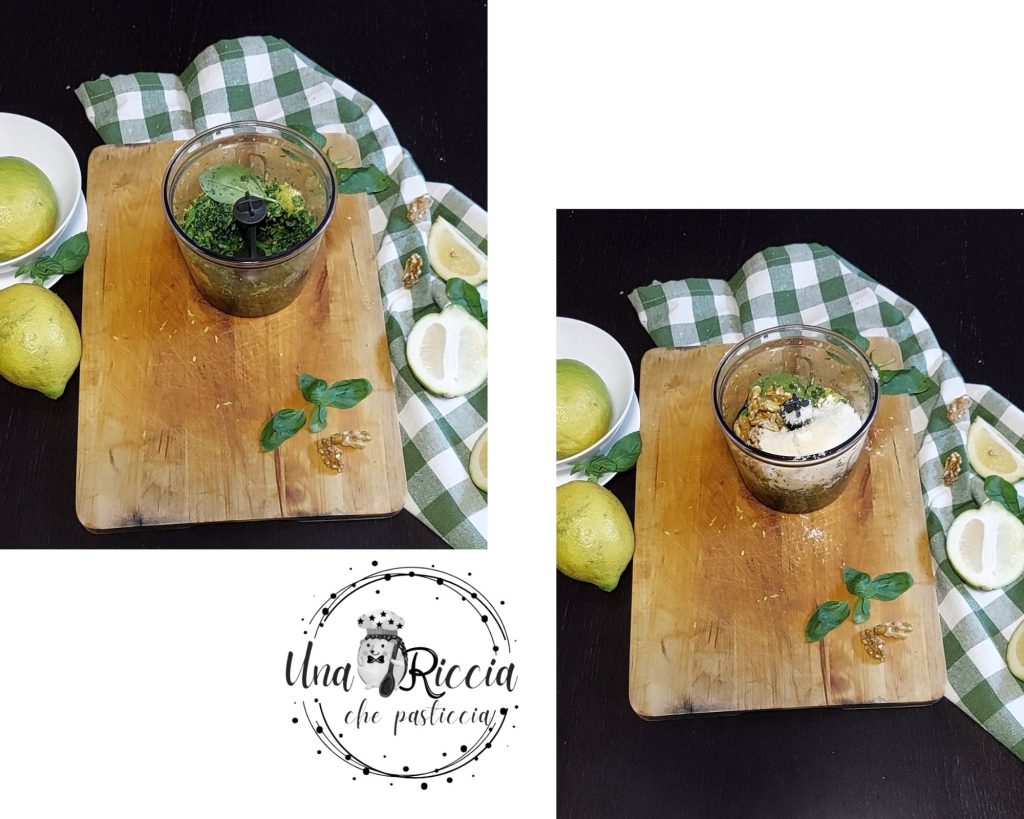 Agora adicionamos também as nozes, o parmesão ralado e o azeite, damos uma batida rápida antes de passar para a fase final da preparação.