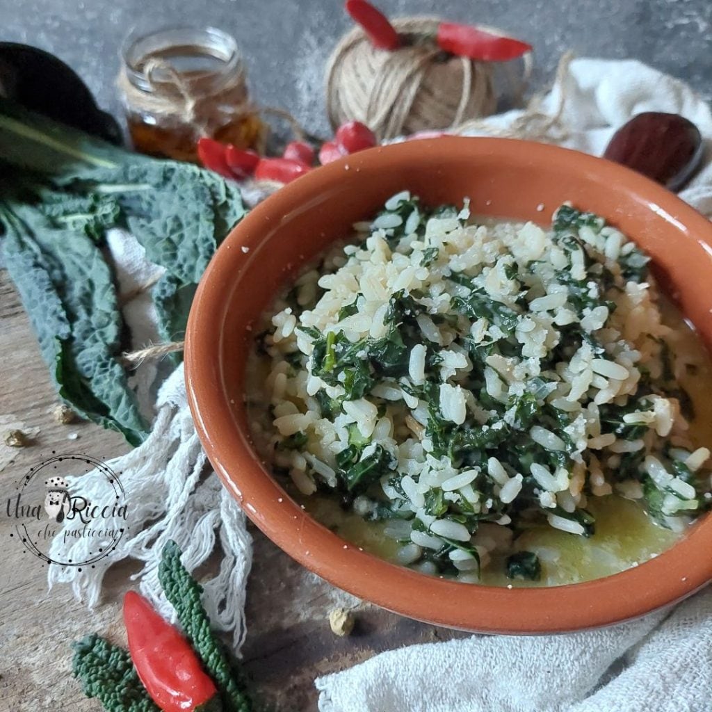 Podemos usar a couve para preparar magníficos nhoques, um delicioso pesto ou sopas saborosas. Nesta receita, usei em combinação com arroz e pecorino toscano maturado ralado que, com seu odor delicado de frutas secas e feno, exalta ainda mais este prato.