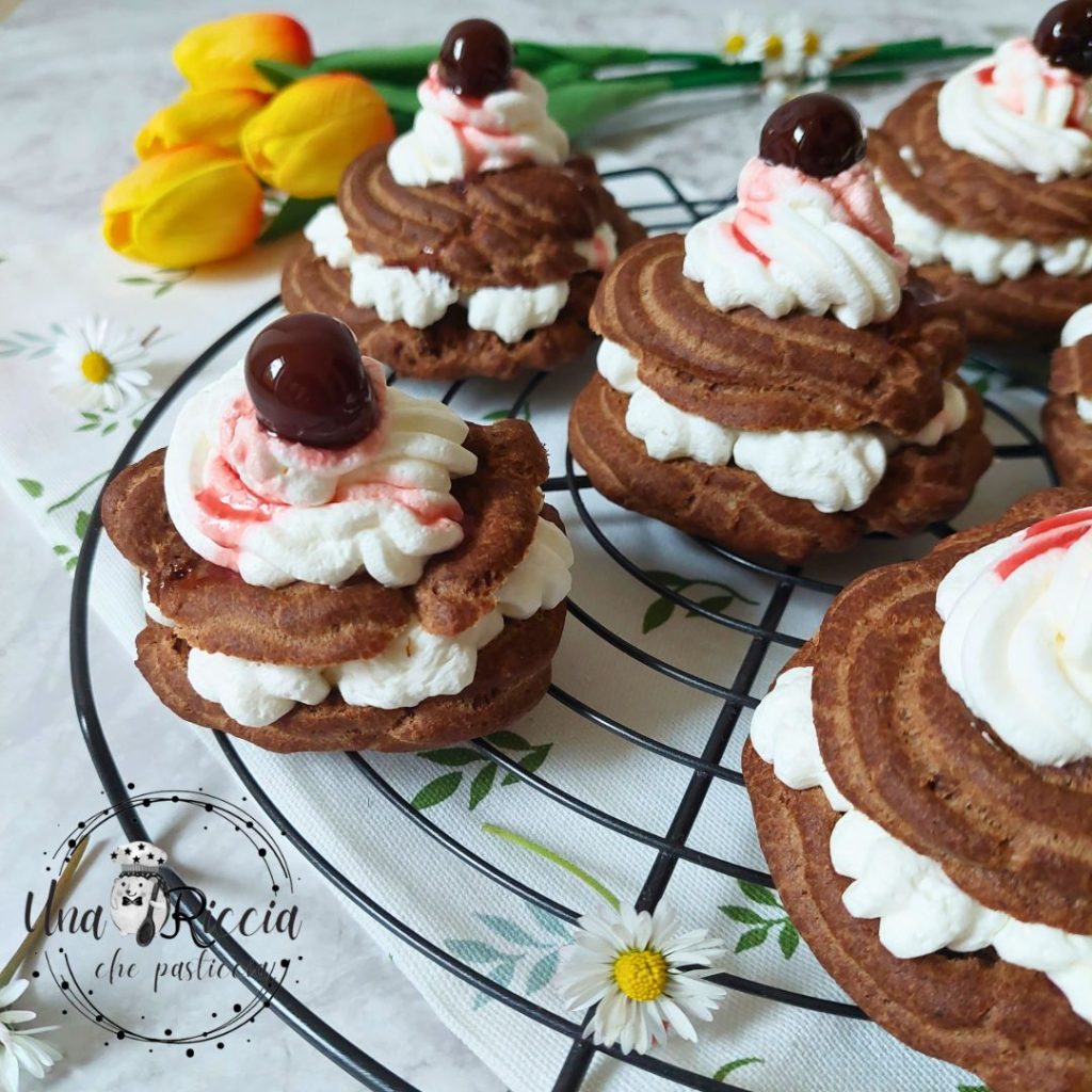 Meu pai prefere a versão clássica das zeppole, mas desta vez o surpreenderemos com a versão de cacau recheada com chantilly simples, tenho certeza de que ele vai apreciar muito.