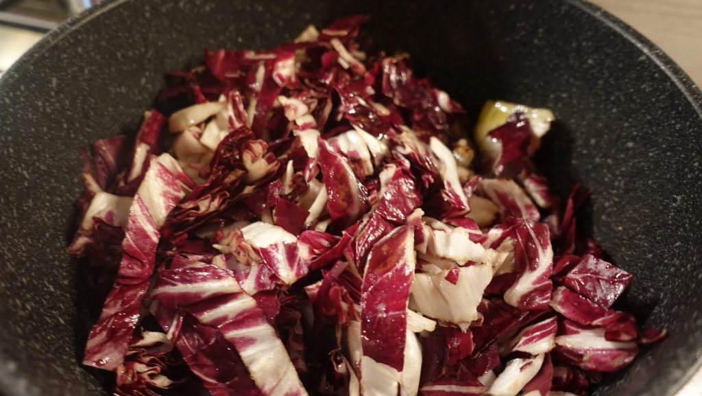 Aqui está, pronto o acompanhamento de repolho e radicchio.