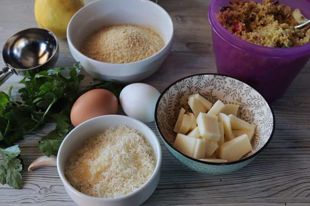 Consuma as almôndegas de cuscuz quentes para ver o recheio derretido.