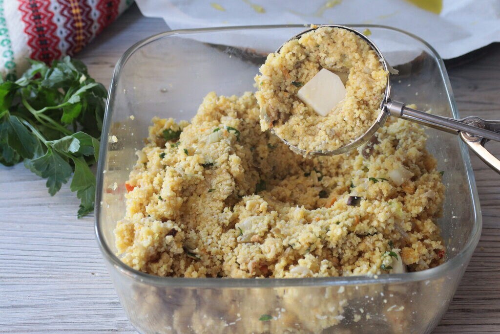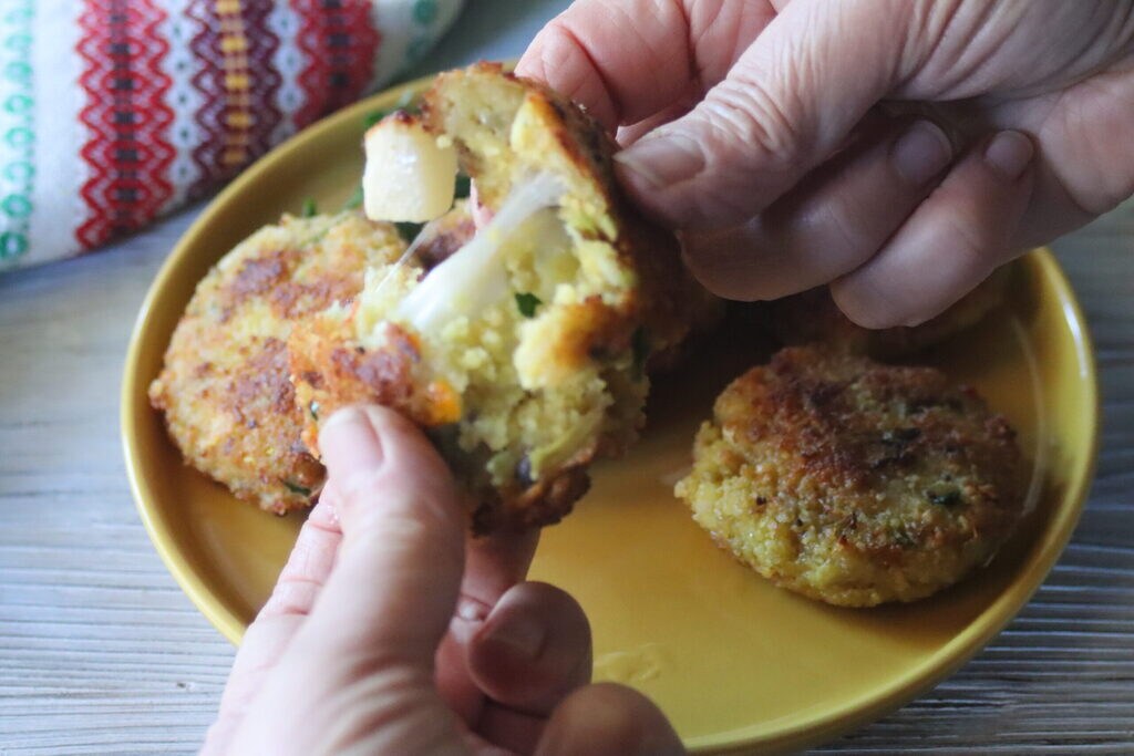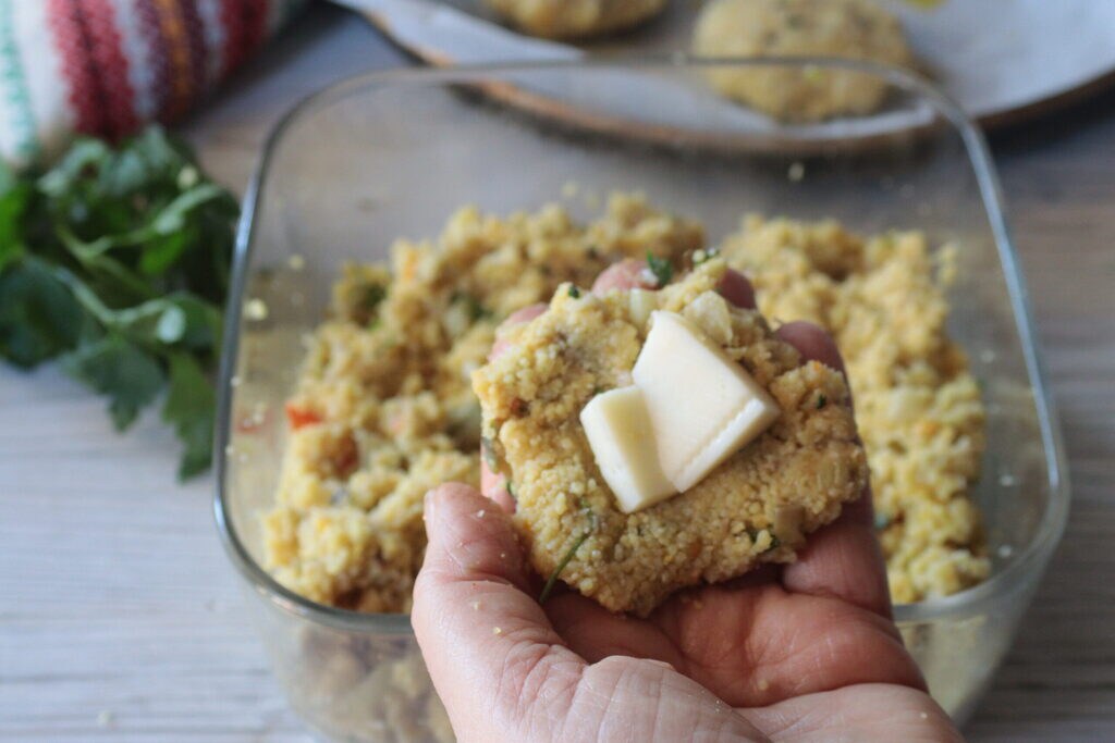Consuma as almôndegas de cuscuz quentes para ver o recheio derretido.