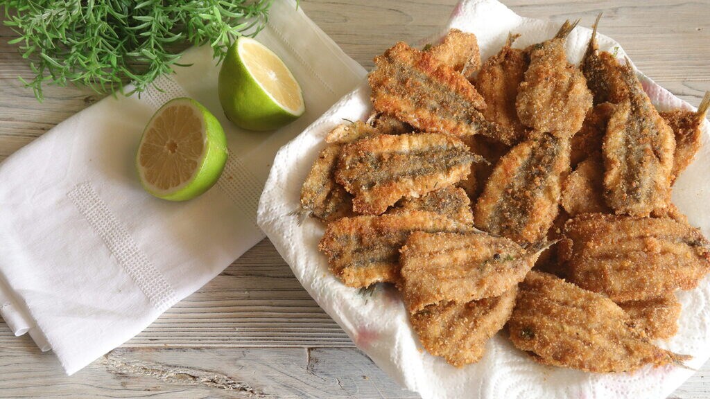 Anchovas empanadas e fritas na frigideira e com óleo de sementes, desta vez deixo de lado minha air fryer e meu micro-ondas, estou realmente com vontade de fritura. Embora a temporada de anchovas tenha acabado, ainda podem ser encontradas no mercado, apesar do curto período de pesca das anchovas que vai do final de março a julho, mas até novembro é possível encontrá-las. Todos sabemos que hoje em qualquer época do ano encontram-se no mercado produtos de pesca vindos dos Mares do Norte. Em toda a Sicília, as anchovas são preparadas de mil maneiras, com migalhas de pão e alcaparras, com pinhões e passas, com anchovas frescas e as em conserva, marinadas, à pizzaiola e você já preparou a parmegiana de anchovas? Como um peixe azul, além de ser saboroso, faz muito bem, se você prepará-lo com brócolis, couve-flor, chicória, repolho ou couve-de-bruxelas, a combinação de sabores é realmente perfeita.