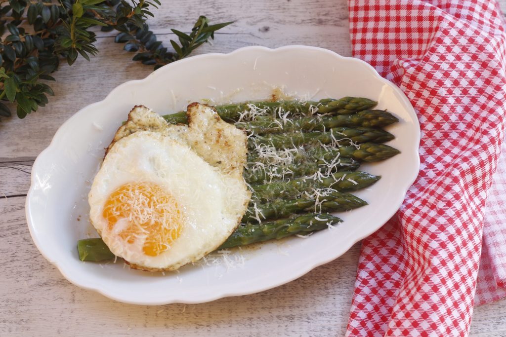 Aspargos com ovos à Bismark, mais proteínas para uma alimentação reforçada e substanciosa. Antes de tudo quero explicar o que é a Bismark: é um tipo de preparação com verduras ou com carne que prevê também o ovo preparado “olho de boi” por cima. Este prato tão robusto recebe o nome do chanceler alemão Bismark, um homem muito forte que gostava de comer pratos bem substanciosos e fortes como ele; ele também afirmava que quem trabalhava muito devia se alimentar muito bem. Então dá para entender de onde vem o nome do prato. Sem dúvida minha preferência é pela dupla verduras e ovo frito, que considero um segundo prato completo com ovos e aspargos. E aqui está hoje o meu prato de aspargos com ovos à Bismark.
