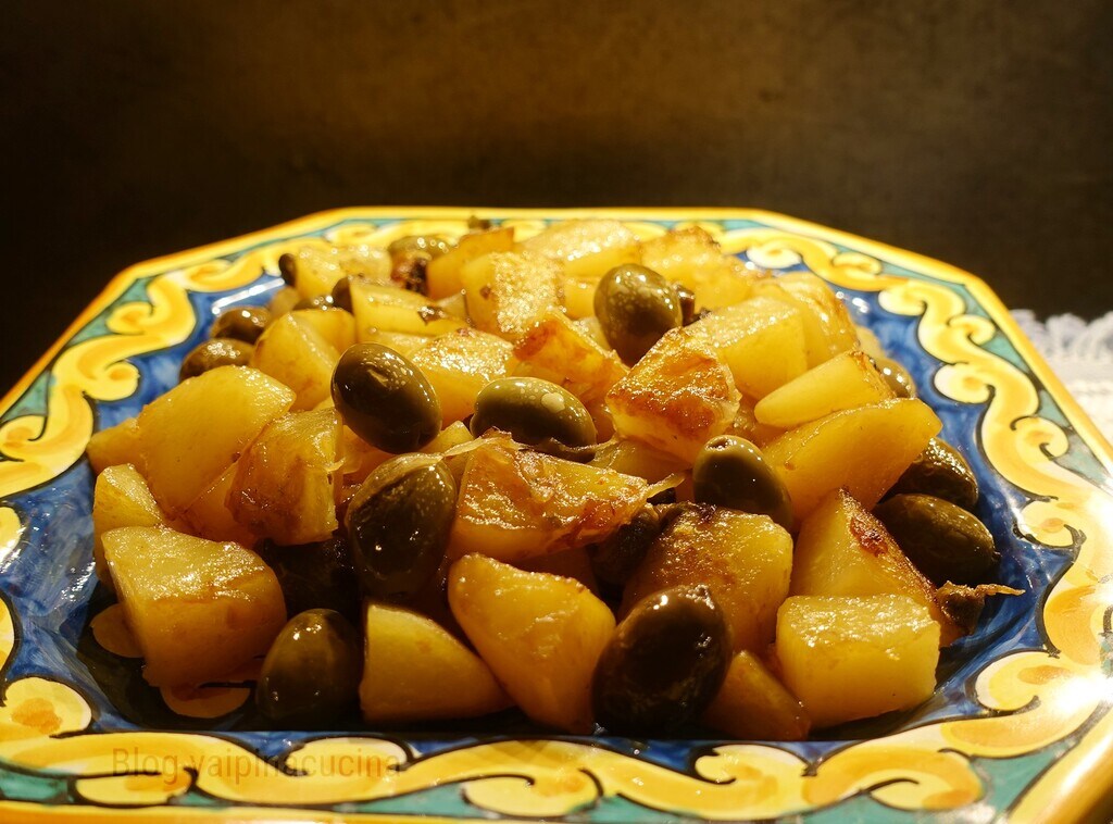 Batatas preparadas à siciliana, acompanhamento simples mas muito rico, também chamado de batatas à siracusana. O nome ‘aparecchiare’ ajuda a entender melhor o conceito: um simples prato de batatas, mas mais apetitoso, enriquecido com azeitonas, cebolas e alcaparras. Vamos para a Sicília, onde mesmo um simples acompanhamento de batatas consegue se tornar um super prato. Do açúcar e do vinagre, se percebe o agridoce, característica de muitos pratos sicilianos que podemos encontrar também na Caponata. Você encontrará esta receita na categoria de acompanhamentos quentes, mas na verdade este prato é ótimo também frio, justamente por seu sabor agridoce. No meu blog.giallozafferano.itvaipinacucina haverão outras receitas típicas sicilianas e não só, receitas de peixe que combinam bem com as batatas preparadas à siciliana.