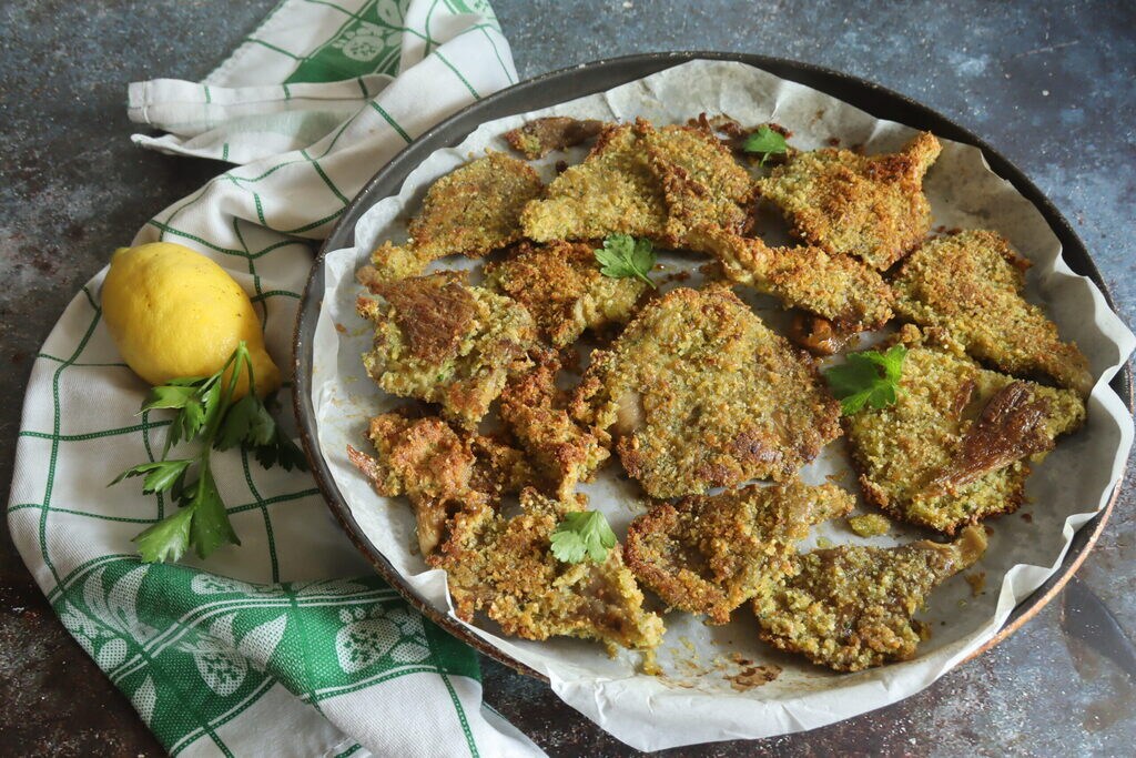 E aqui estão eles prontos e perfumados, os bifes de cogumelos pleurotus, um segundo prato alternativo vegetariano.