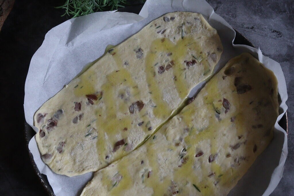 Passos para preparar as bolachinhas de azeitonas e alecrim