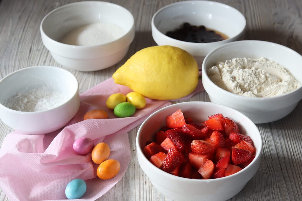 Se preferir colocar apenas os morangos, adicione um pouco mais, o mesmo peso dos mirtilos. Você pode fazer apenas mirtilos, como preferir, lembre-se de usar sempre o mesmo peso total das frutas para o seu bolo de anel.