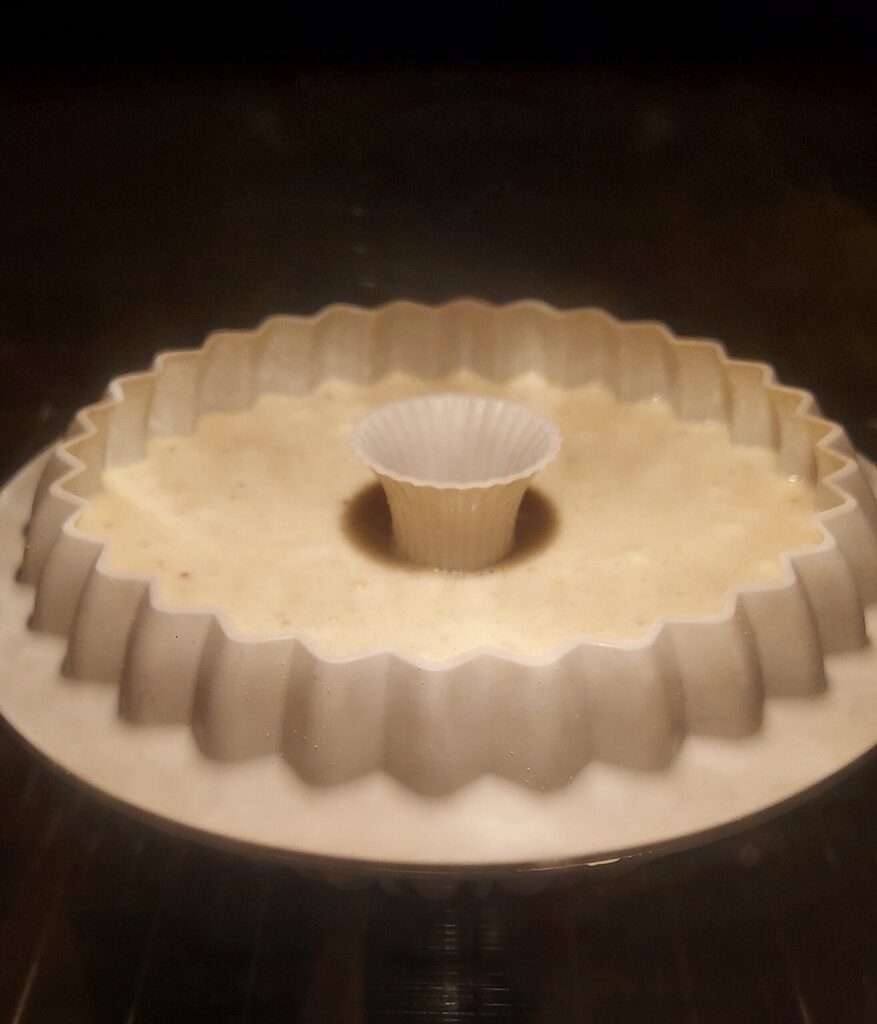 O forno a 180° por 40 minutos e o bolo de arroz e amêndoas está pronto!