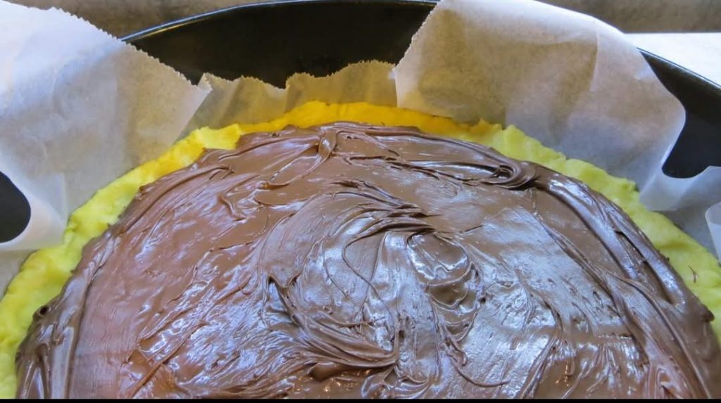 Cubro a massa de torta com Nutella