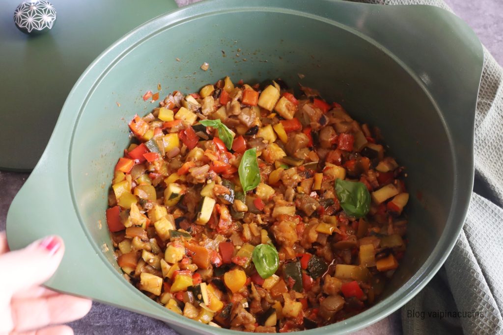 • A caponata de legumes com Incrível Cocotte está pronta para saborear.