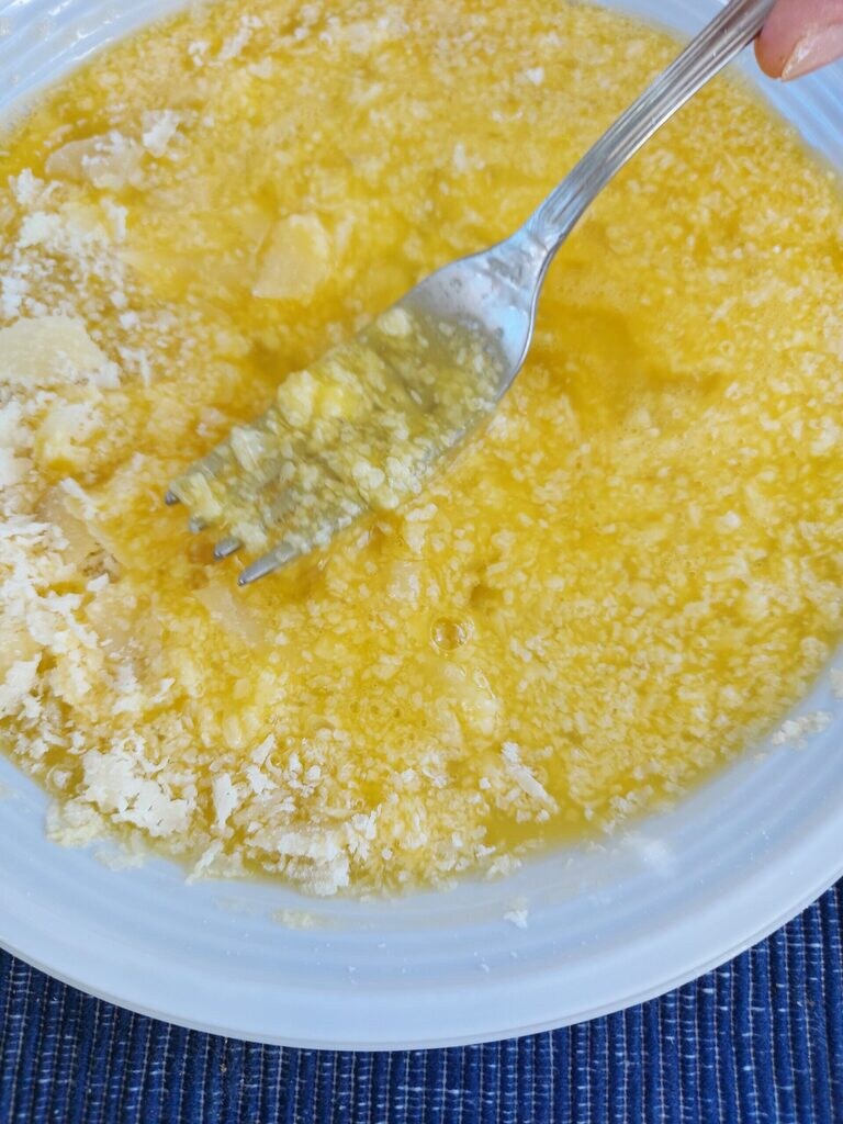 • Bato os ovos e adiciono o pecorino ralado. Cozinho o espaguete al dente e misturo com as berinjelas. Fora do fogo, adiciono os ovos com o pecorino.