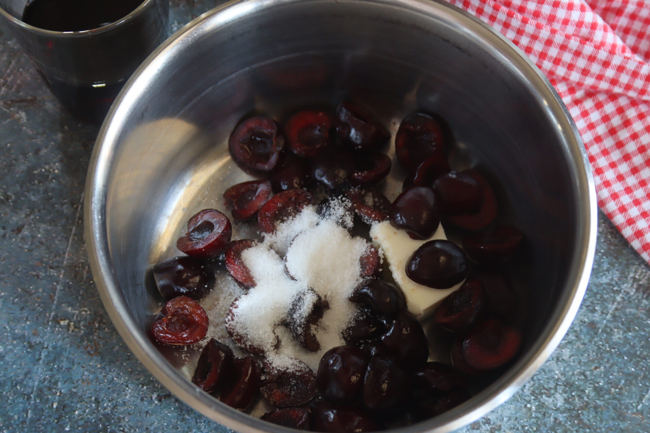 Ingredientes necessários para preparar as cerejas cozidas