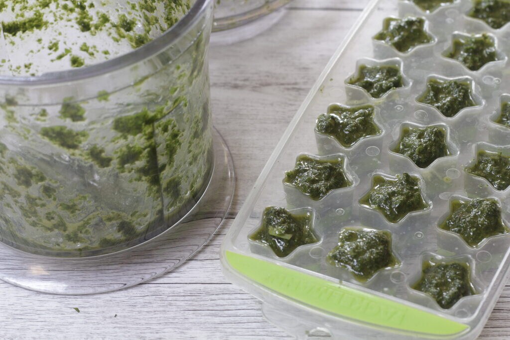 Bati o manjericão por 30 segundos, o suficiente para torná-lo um creme suave creme.