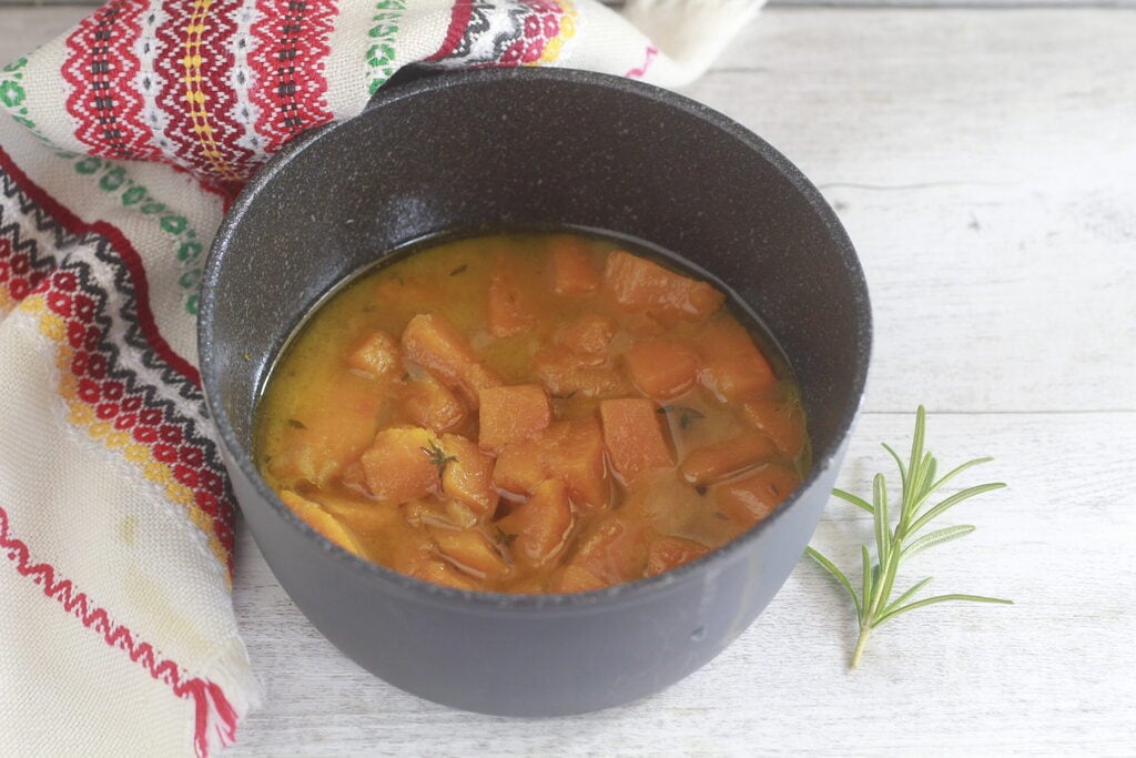 Creme de abóbora, ou sopa, é praticamente um purê alongado com caldo ou creme de leite (se você quiser torná-lo mais leve, o leite também serve). Normalmente é consumido quente. Mas certamente você também apreciará a versão fria do creme de abóbora, simplesmente muito agradável. Muito amada na Europa e não só, sabemos com certeza que é um dos muitos pratos populares usados no Dia de Ação de Graças nos Estados Unidos. O creme de abóbora é macio como um suéter de cashmere. Agora que é a temporada de abóbora, eu congelo ela cortada em pedaços pequenos em sacos já prontos em porções, no momento de usar, obviamente crua e não precisa descongelar antes de usá-la.